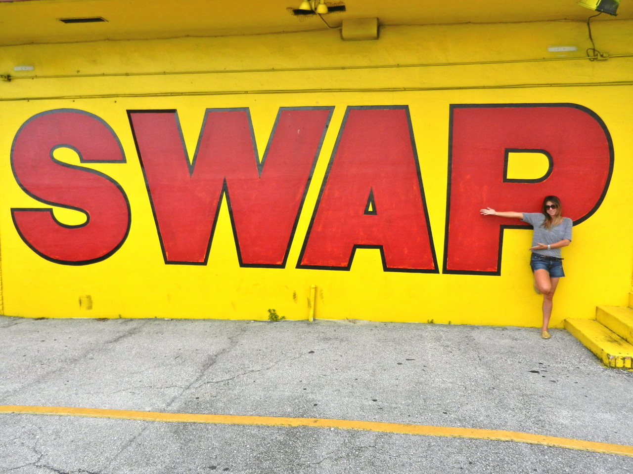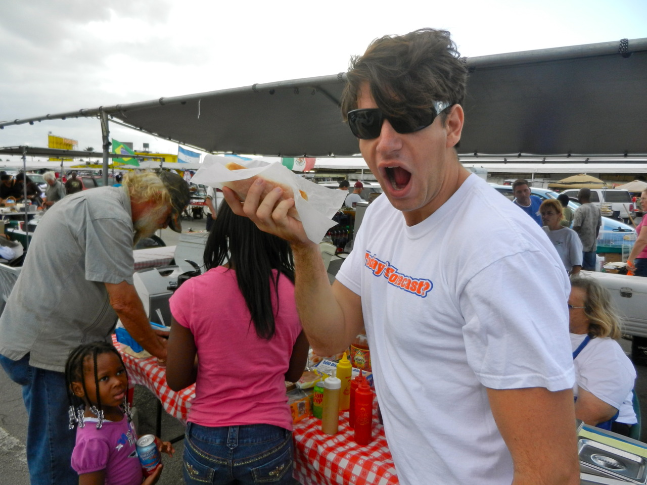 Most of my friends are appalled I frequent the Swap Shop on a weekend basis. In fact, they think I’m bat shit crazy for going to it. But the reason I go isn’t for the $1 hotdogs (my little bro pictured here with one) or the cheap steals or the ridiculously good people watching — it’s to hang out with my dad because it’s his favorite place on Earth.